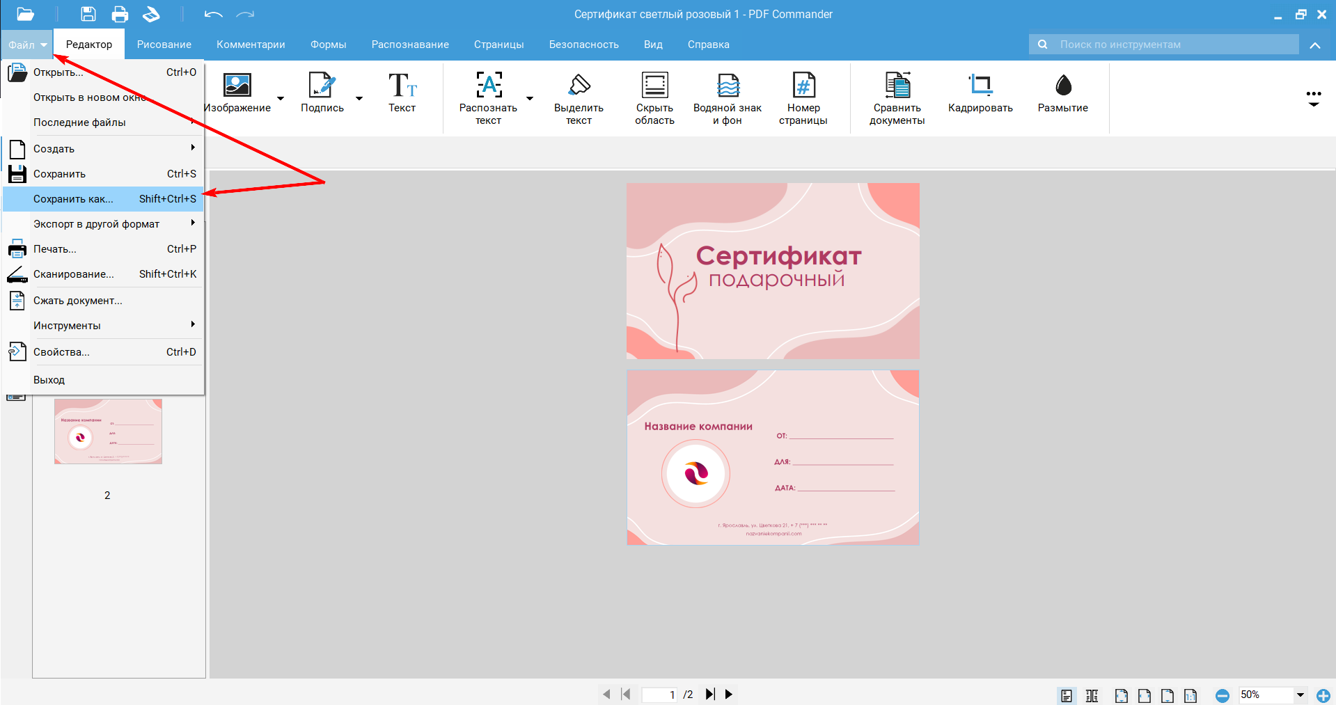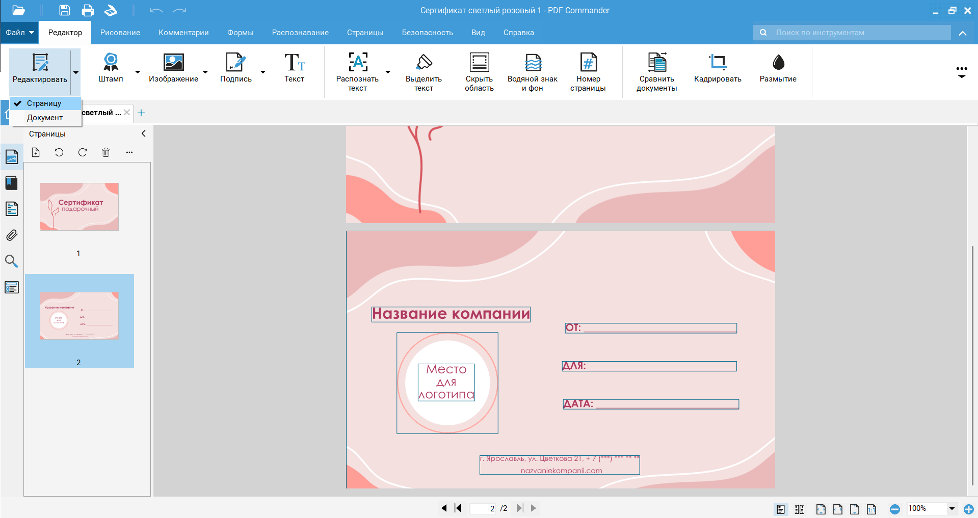В некоторых программах есть готовые шаблоны. Мы рассмотрим создание подарочного сертификата на примере PDF Commander. Макеты, которые вы найдете в библиотеке этого софта, можно быстро настроить под себя, не обладая навыками дизайнера.