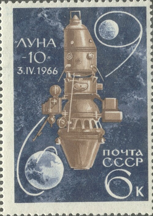 Почтовая марка СССР с изображением «Луна-10», общественное достояние