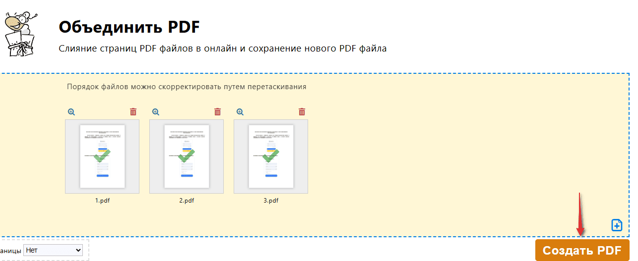 Онлайн-сервисы — самый быстрый способ объединить несколько PDF-файлов в один, особенно если есть доступ к интернету. Не требуется устанавливать программы или разбираться в настройках операционной системы. Достаточно загрузить файлы на сайт, нажать несколько кнопок и получить готовый результат.