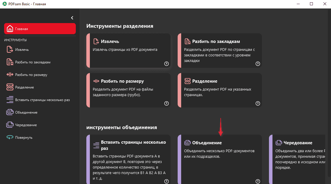 - Для работы с конфиденциальными данными или в условиях отсутствия интернета надежнее использовать десктопные программы, как, например, PDFsam Basic.