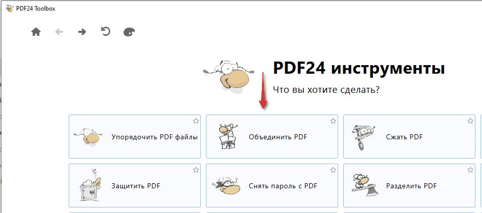 - Для начала нужно открыть PDF24 Toolbox и выбрать Объединить PDF.