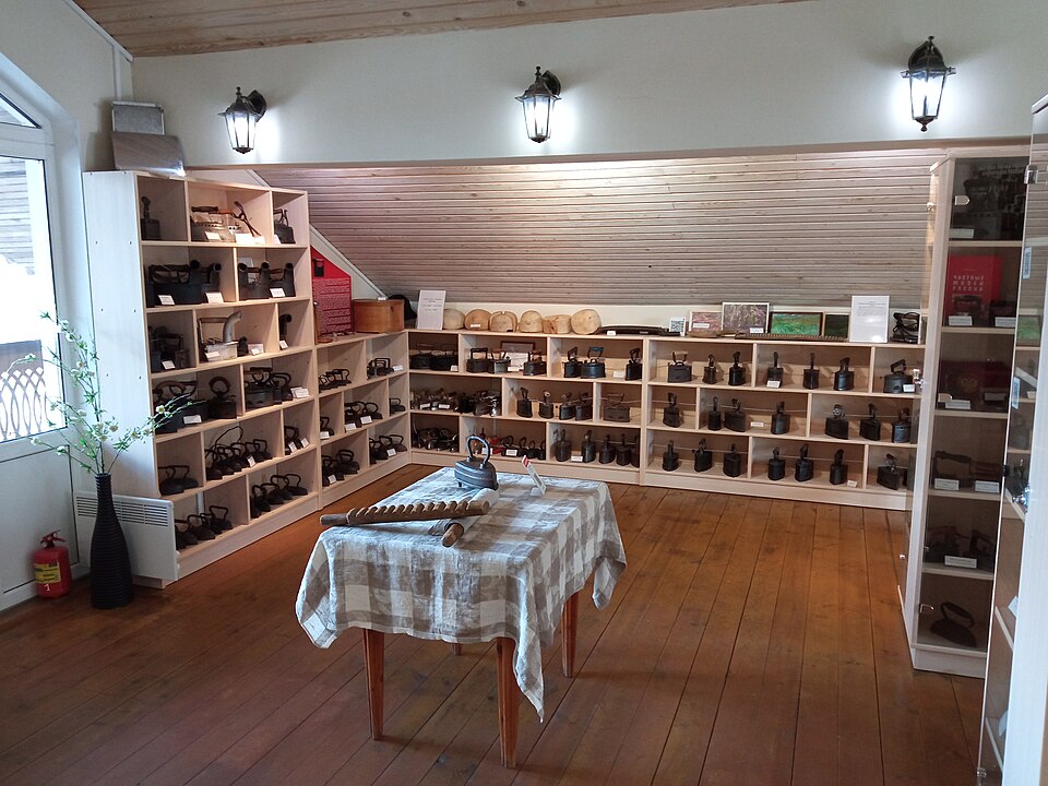 Потрясающий, уникальный частный музей историко-краеведческого клуба «Лад» на территории мебельной фабрики в Смоленске интересен тем, что здесь представлено более пятисот утюгов из самых разны стран мира. Но особенность коллекции заключается в том, что здесь представлены утюги разного назначения: основатель музея, коллекционер и историк-краевед Леонид Григорьевич Гольнев представил особые утюги – для глажки воротничков, для глажки шляп, даже для глажки перчаток. Жемчужина коллекции — маленький французский походный утюжок для глажки манжет: этот экспонат был найден на Валутиной горе, так что есть все основания предполагать, что он принадлежал кому-то из офицеров наполеоновской армии и пролежал в этом историческом месте аж с 1812 года.