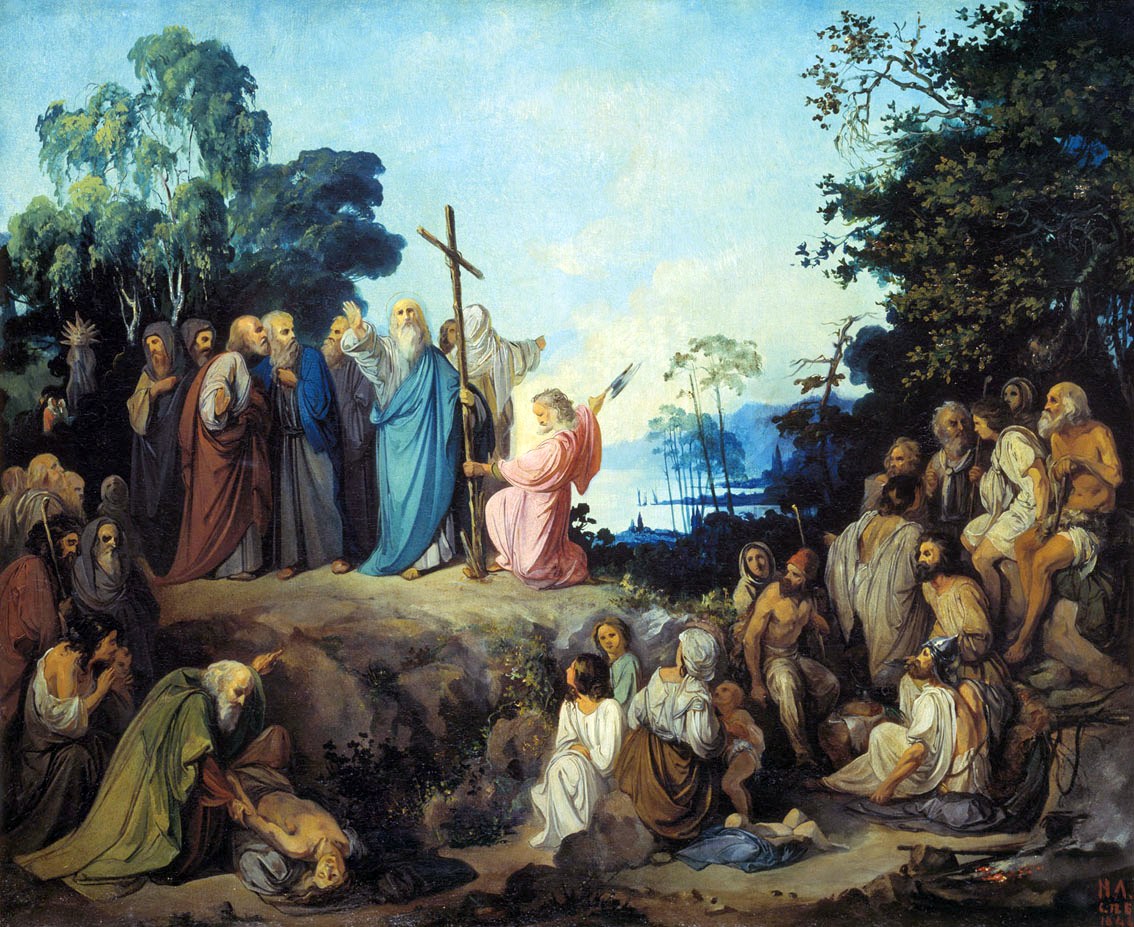 Апостол Андрей Первозванный водружает крест на горах Киевских (Картина работы Н.П. Ломтева, 1848, Третьяковская галерея, Москва, Общественное достояние)